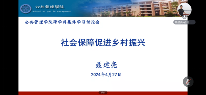 聂建亮教授汇报的主题为《社会保障促进乡村振兴》,在新时代推动西部大开发座谈会中,习近平强调要坚持推进新型城镇化和乡村全面振兴有机结合,在发展中保障和改善民生,明确了完善与乡村振兴战略相契合的农村社会保障对实施乡村振兴战略意义重大。接着以时间为基线,深入剖析了包括集体保障与家庭保障相结合阶段、集体保障退场与制度性社会保障探索阶段以及社会保障体系逐渐完善阶段在内的各阶段农村社会保障发展轨迹及其成果。在此过程中,我国社会保障制度呈现逐渐完善的趋势,其发挥的功能也越来越强,可以说农村社会保障制度的发展为其奠定了助力乡村振兴的基础。就社会保障助力乡村振兴的路径解析来看,具体体现为农村社会保障与乡村振兴战略的总要求相契合;农村社会保障助力破解乡村振兴中的人才、土地困境在内的多重困境。而在发展中就不可避免的会存在一些缺陷,制约社会保障助力乡村振兴效果的制度缺陷就包括结构维度的农村社会保障项目体系残缺;水平维度的农村社会保障水平普遍偏低以及管理维度的农村社会保障管理机制尚未理顺。针对现存的制度缺陷,应加强农村社会保障项目体系建设,与时俱进补齐项目短板;稳健提高农村社会保障水平,着力解决农村社会保障资源紧缺的问题;理顺农村社会保障管理机制,完善社会保障人才培养机制,提高社会保障管理效率。