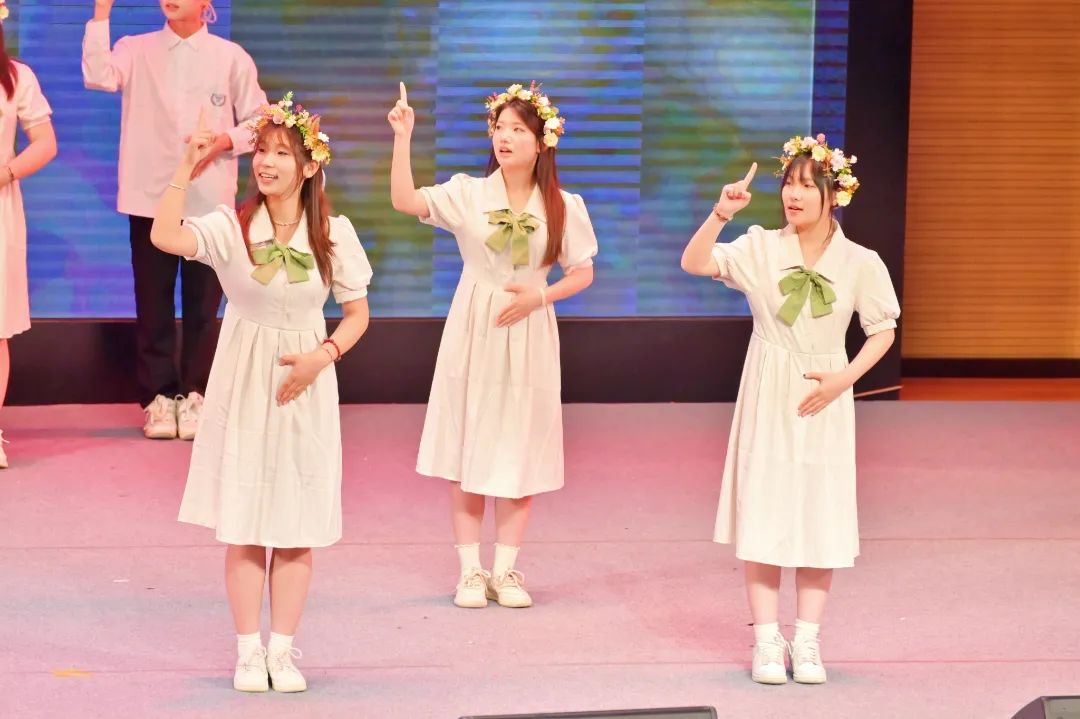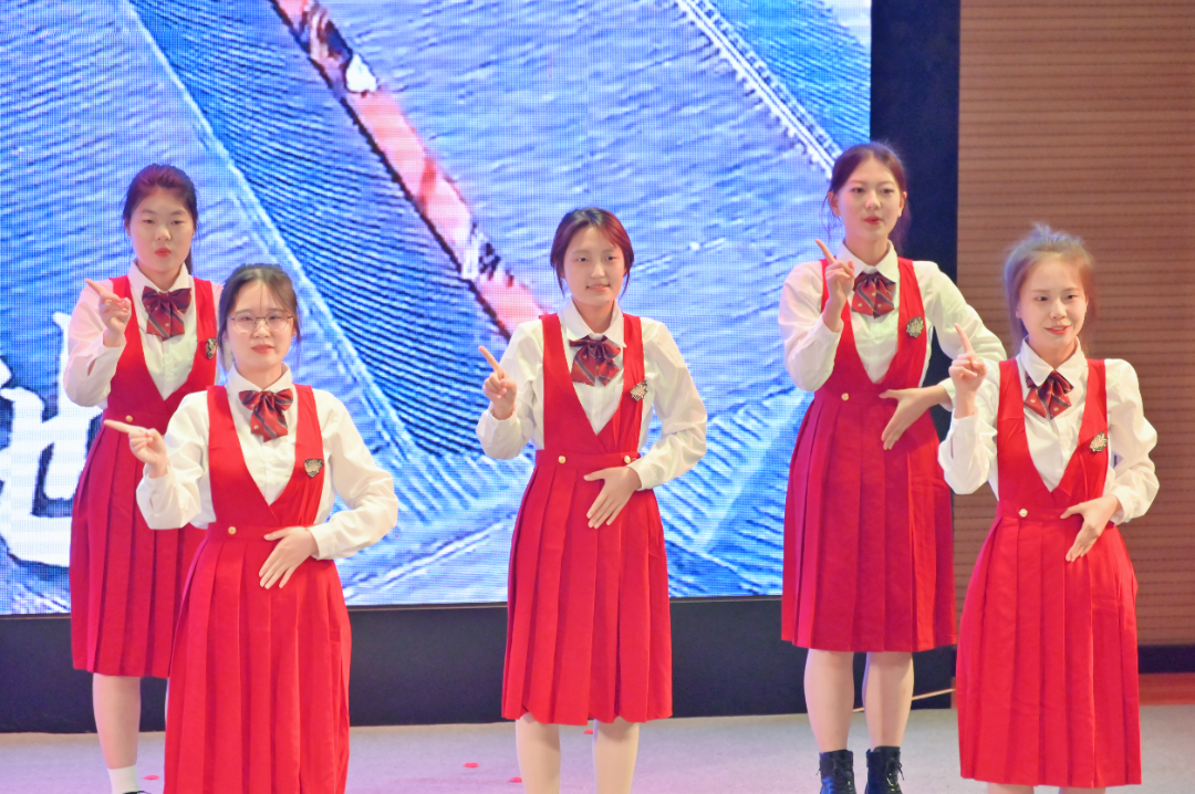 (“公筑梦想 一路生花”队进行手语操表演)