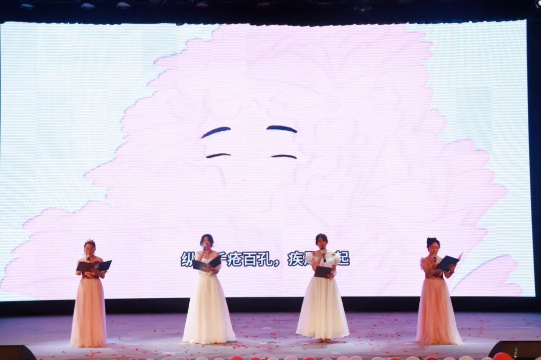 在手语操表演的余韵之中,我学院倾情呈现一场视听盛宴。由王艳萍、周奕敏、王梓熠、马静雯携手演绎的诗朗诵《当我真正开始爱自己》,歌声与诗篇交织,揭示出灵魂深处的温柔与坚定。吴冕和张婧仪演唱的歌曲《那些我尚未知道的美丽》,用音符勾勒出对美好未来的向往。舞蹈《Magnetic》也引发了观众的激烈反响。舞台上,他们熠熠生辉,犹如繁星闪耀,为这场比赛增添了无尽的魅力。