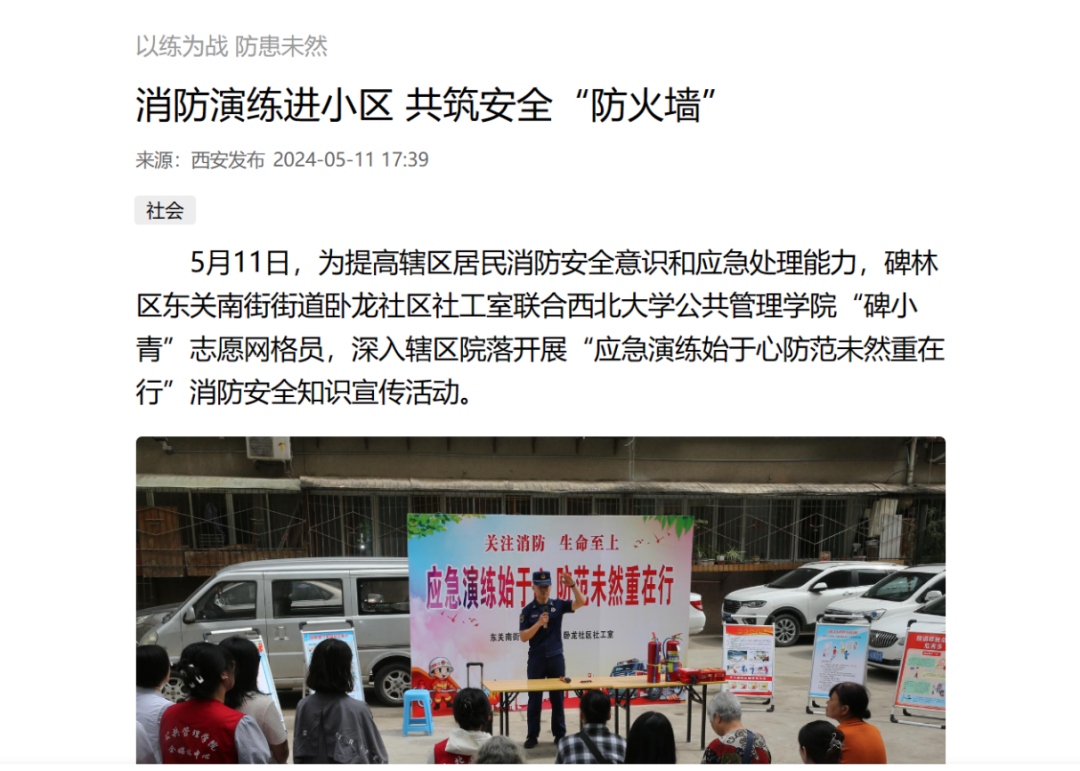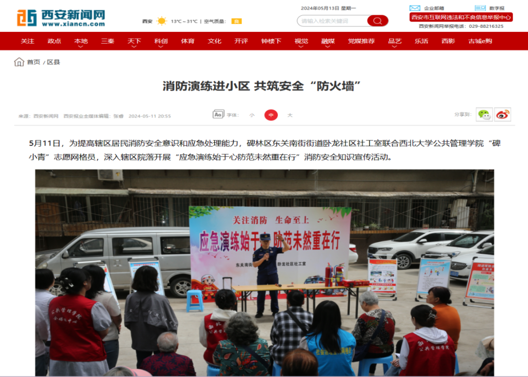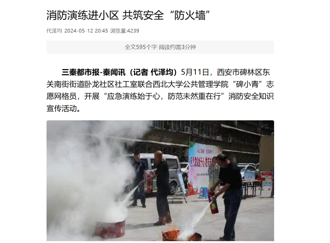 “应急演练始于心,防范未然重在行”的消防安全知识宣传活动圆满开展,此次活动受到西安发布、西安新闻网、三秦都市报等多家市级媒体报道。
