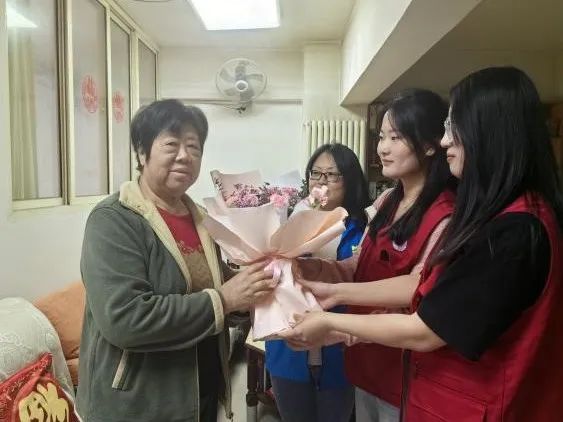 活动结束后,志愿者们还跟随社区工作人员前往独居老人家中,一方面为其排除消防安全隐患,讲解预防火灾的专业知识、急救方式和注意事项,另一方面还为女性居民送去鲜花和母亲节的祝福。