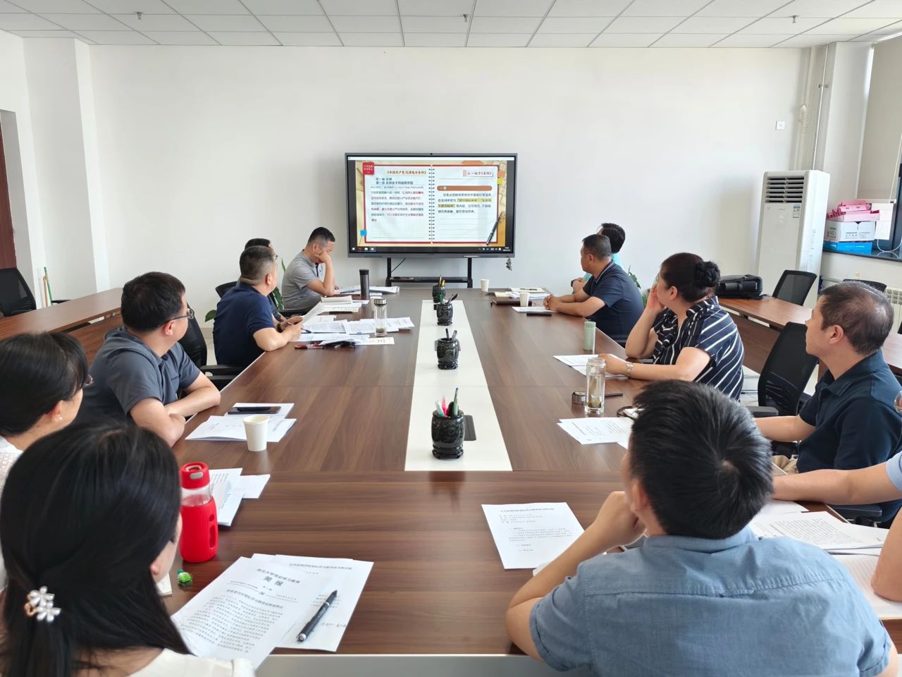 5月20日下午,院党委中心组组织了第一次集中学习。集中学习前,中心组成员已自学了《中国共产党纪律处分条例》《<中国共产党纪律处分条例>学习解读》《<中国共产党纪律处分条例>简明读本》及相关文件精神。集中学习时,党委书记窦争光重点领学了习近平总书记关于全面从严治党、党风廉政建设和反腐败斗争的重要讲话和指示批示,带领与会同志准确把握党纪学习教育的重要意义、目标要求和学习重点。全体同志集体观看反腐警示教育电视专题片《持续发力 纵深推进》,深刻认识全面从严治党的必要性和紧迫性。会议强调,党员领导干部必须坚定理想信念,警惕思想滑坡、精神懈怠,要坚持以党的创新理论滋养初心、引领使命,保持艰苦奋斗、奋发有为的精气神,敢于斗争、善于斗争,敢于担当作为。