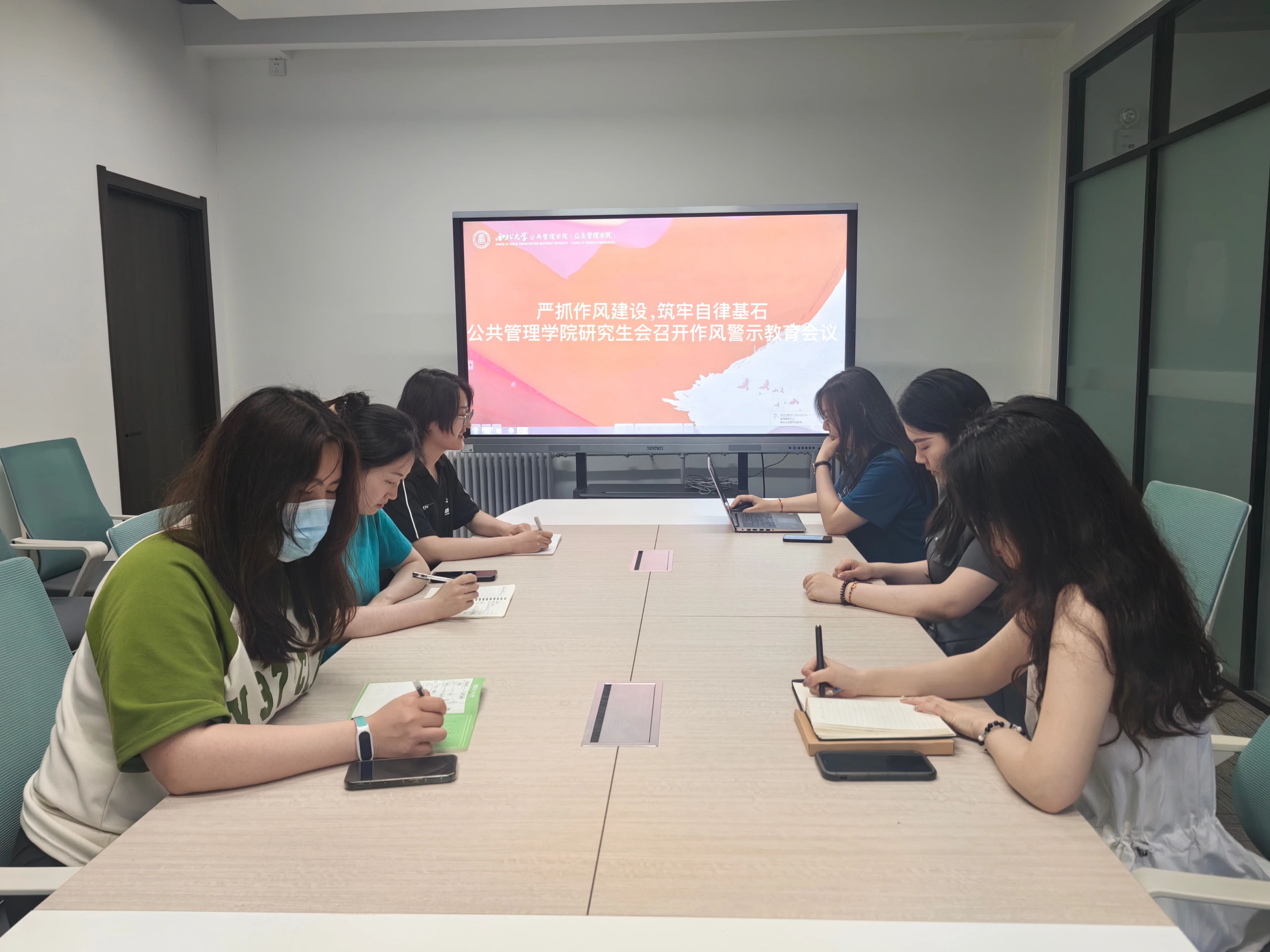 为进一步强化研究生会团支部成员的作风建设,提高自省自律意识,引导团支部成员树立正确的价值观念,为院研究生会持续健康发展提供坚实保障。我学院研究生会于2024年5月23日在我校长安校区三创活动中心洽谈室召开了作风警示教育会议。