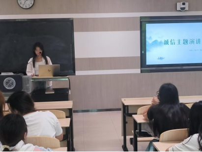 活动第二项,2023级公共管理类专业庞兴月、雒康毅两位同学发表诚信主题演讲,与大家共同探讨如何在新时代背景下树立正确的诚信观念,她们强调了诚信在个人成长和社会发展中的重要性,并且激励同学们以诚待人、以信处事、严于律己、励志成才。