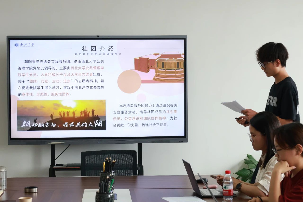 (2022级人力资源管理专业本科生杨泽曦分享汇报了我院朝阳青年志愿者实践服务队本学年的工作)