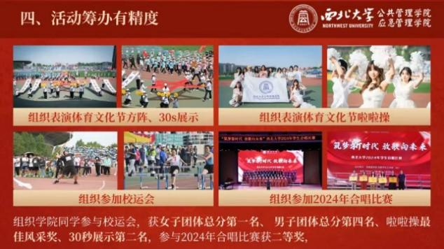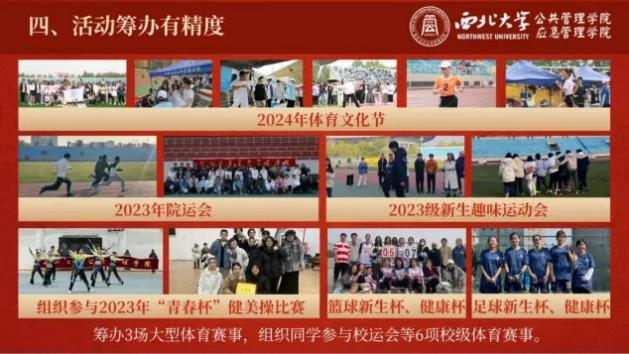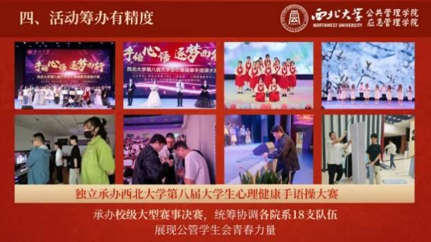 本年度,学生会致力于筹办多元化的活动赛事。针对学术科研,学生会及时发布赛事通知,召开经验分享会3期,同时规范组织竞赛答辩,营造浓厚学术氛围。此外,由学生会主办的“你最珍贵”优秀学生表彰大会,获“我为同学办实事”二等奖。在文体活动方面,学生会共举办了包括迎新晚会、毕业晚会等在内的大型晚会,并且承办了本年度我校手语操比赛,广受好评。此外,为筑牢同学们的中华民族共同体意识,学生会还结合学院特色,开展民族摄影展系列活动;同时在体育方面,组织举办大型体育赛事3场,动员同学参与校级体育赛事6场,并取得优异成绩。此外,学生会在特色节日开展特色活动共6项,促进朋辈关系建设,注重校院联动,积极协办6场校级活动,数据较往年增长了300%。