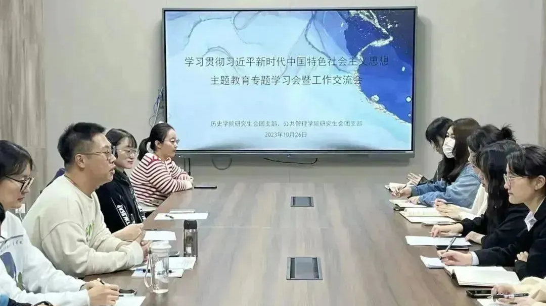 学生组织联合学,专研覃思促理解。与研究生联合党支部联合开展全民国家安全教育日主题学习会,共30余人参与活动,强化国家安全意识,领会习近平总书记总体国家安全观,汲取精神内涵。与历史学院研究生分会团支部开展学习贯彻习近平新时代中国特色社会主义思想主题教育专题学习,共50余人参与本次学习,共同深入学习习近平文化思想。