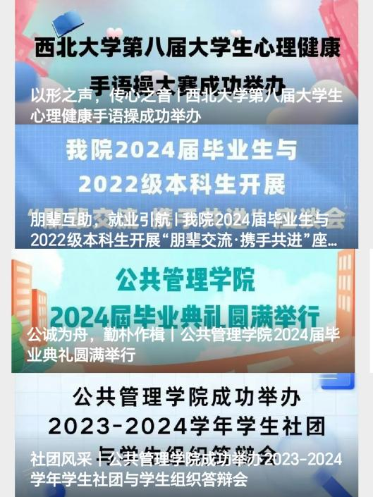 2.搭建合作网络,强化内外联系。积极承担校研究生会组织任务,在“银泰杯”、冬日晚会、“令西大人心动的offer”等活动中贡献公管力量。与兄弟院系联合举办学生活动,与碑林区、长安区及企业开展院地合作、院企合作。