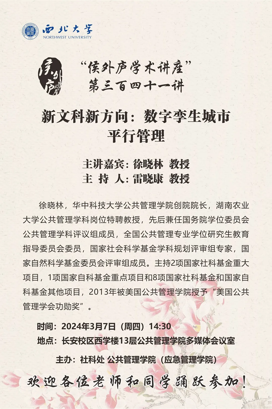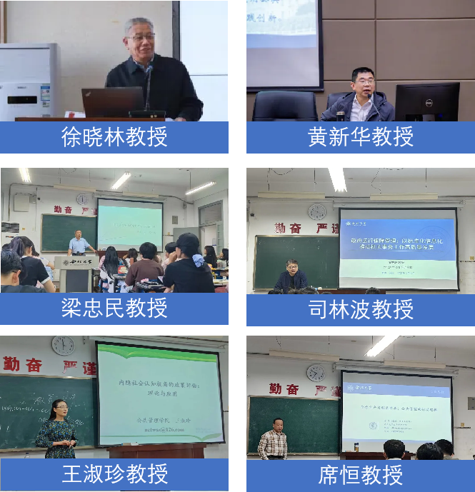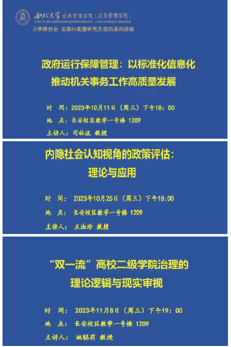 大咖坐镇,学术讲座不停更。协助举办“侯外庐学术讲座”,邀请徐晓林教授、黄新华教授传道授业。协助组织正学报告会公共管理前沿讲座20期,邀请学院梁忠民教授等20位老师组成的专家团队主讲授课。