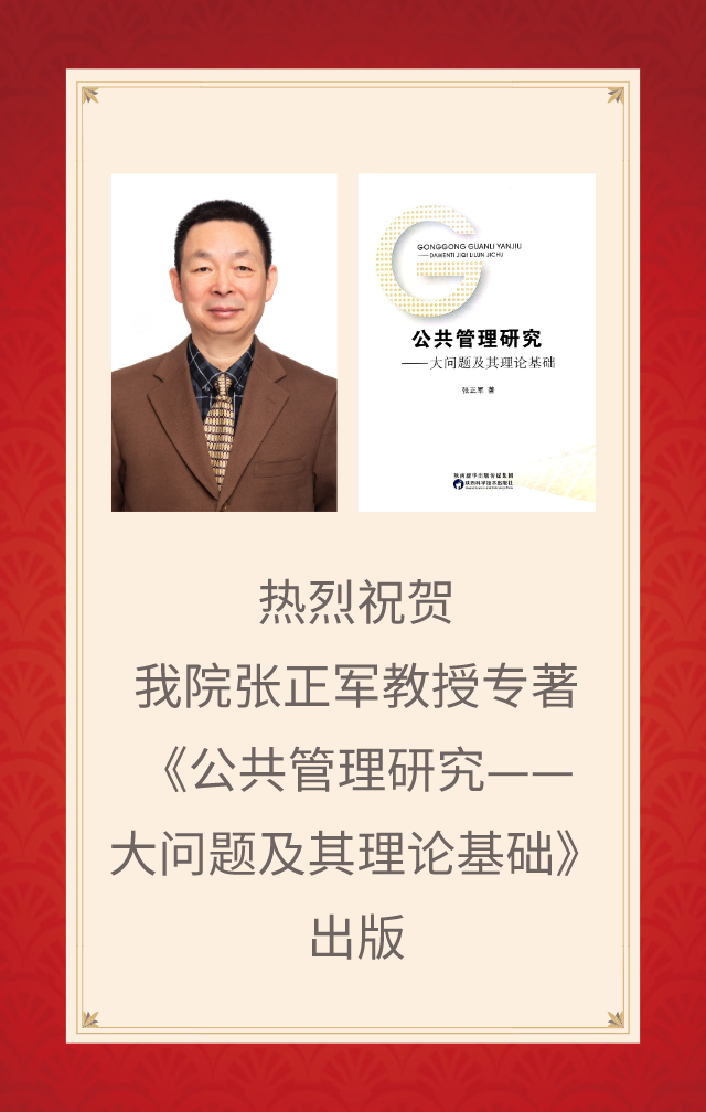 我院张正军教授近期出版了《公共管理研究——大问题及其理论基础》这一学术专著,全书共56万字左右,是我院关于公共管理理论研究的最新成果。