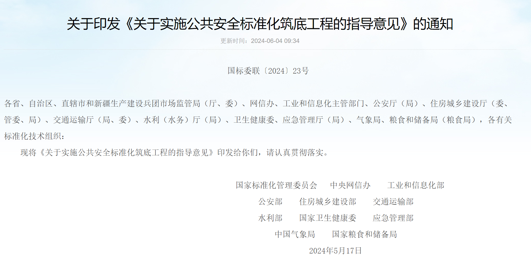 —公共安全标准供给能力显著增强。公共安全标准化技术组织体系更加完善,聚焦防范化解公共安全领域风险挑战,制修订公共安全国家标准和行业标准300项以上,有效支撑公共安全治理水平提升。