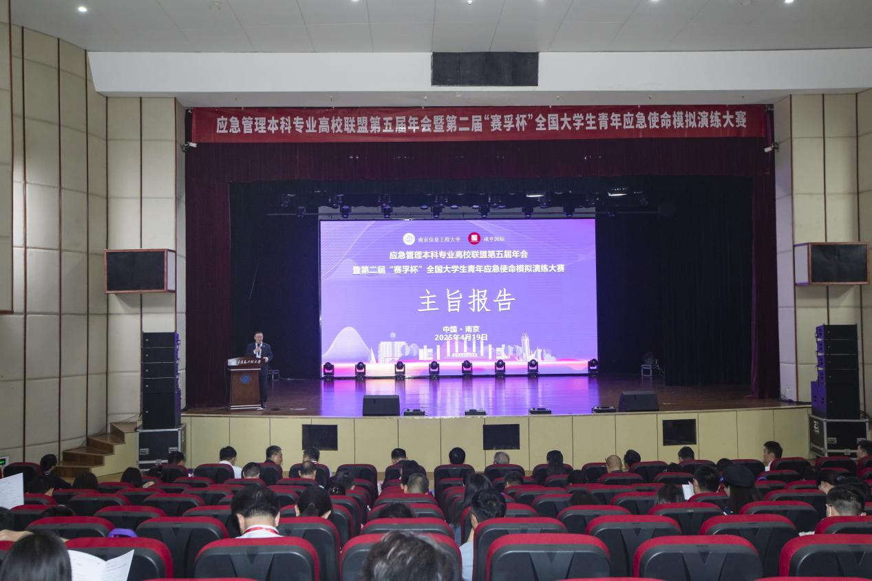 2025年4月19日至20日,应急管理本科专业高校联盟第五届年会暨第二届“赛孚杯”全国大学生青年应急使命模拟演练大赛在南京信息工程大学成功举办,本次大会以“智慧应急·产教融合——AI赋能的应急管理人才培养新范式”为主题,共同探讨新时代应急管理学科建设、技术创新与人才培养路径。来自全国48所高校400余名应急安全专业师生以及来自政府应急管理系统、科研机构、企事业单位的领导和专家参加大会。