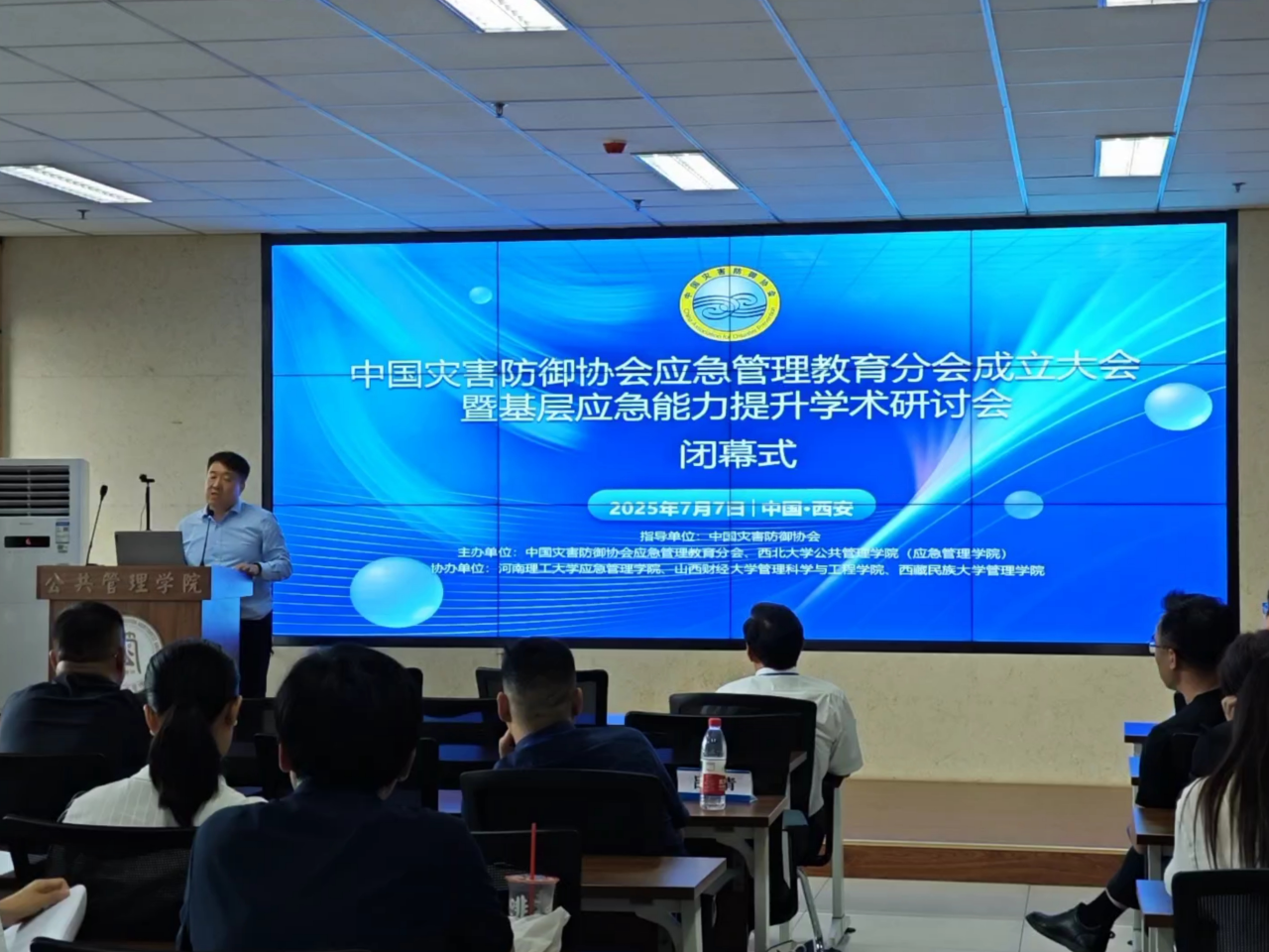 2025年7月7日,受中国灾害防御协会指导,由中国灾害防御协会应急管理教育分会、ylzzcom永利总站线路检测主办,河南理工大学应急管理学院、山西财经大学管理科学与工程学院、西藏民族大学管理学院协办的中国灾害防御协会应急管理教育分会成立大会暨基层应急能力提升学术研讨会在我校长安校区宏观经济大楼一层山峰报告厅隆重召开。中国灾害防御协会会长郑国光、陕西省应急管理厅党委委员、副厅长李虎平,我校副校长曹蓉出席了分会成立大会。武汉大学丁煌教授、河南理工大学夏保成教授、暨南大学蔡立辉教授、中国科学院科技战略咨询研究院陈安研究员、中国人民大学王宏伟副教授分别做主旨演讲。来自全国20多所高校和科研机构的100多位专家学者参加了本次研讨会。