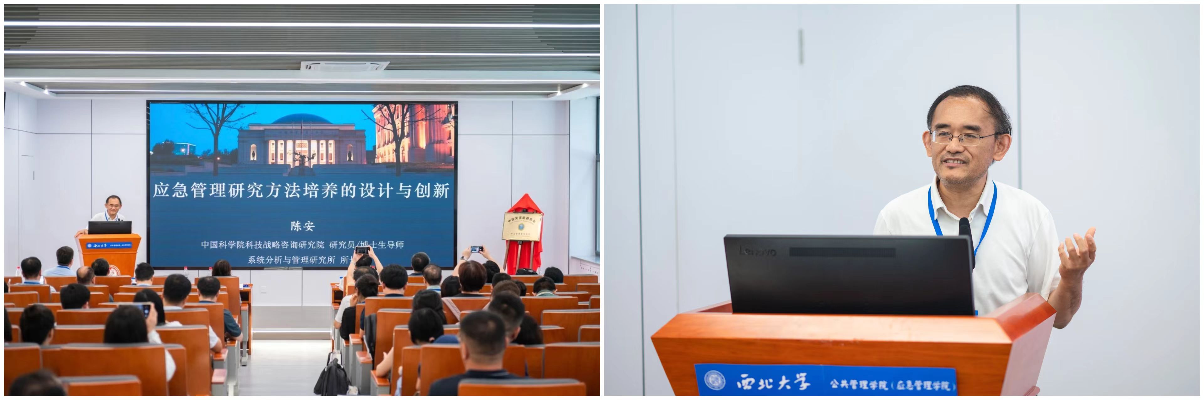 中国科学院科技战略咨询研究院研究员陈安作《应急管理研究方法培养的设计与创新》主旨演讲,他指出应急管理研究应从效应出发,深入探究机理,进行综合分析,并最终形成管理机制。陈安还介绍了管理效应分析的理论与实践应用,包括柠檬市场效应、墨菲定律、事故因果连锁理论等,并探讨了管理效应的科学内涵、分类以及在应急管理中的应用。