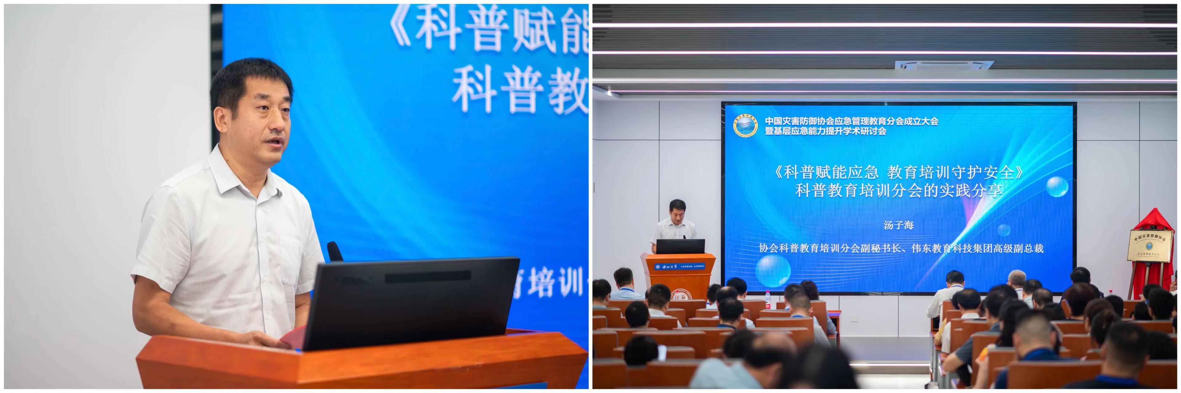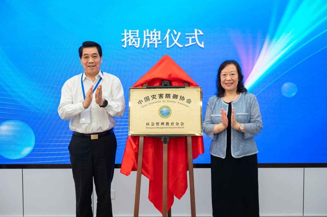 中国灾害防御协会会长郑国光、我校副校长曹蓉共同为中国灾害防御协会应急管理教育分会揭牌剪彩。协会科普教育培训分会副秘书长汤子海(伟东教育科技集团)应邀分享了首届应急管理视频大赛的发展情况。