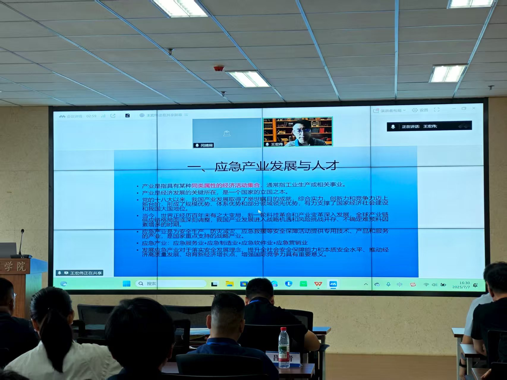 中国人民大学公共安全风险治理研究中心、国家安全研究中心主任王宏伟作《以应急人才培养助推应急产业发展》主旨演讲,他指出,应急产业作为支撑国家本质安全的重要领域,是推动经济高质量发展的关键力量。应急教育与应急产业要共同担负起战胜突发事件及其风险的时代重任。王宏伟系统梳理了近19年来我国应急产业发展的政策脉络,强调产业升级与人才支撑之间的高度关联。