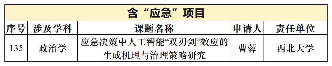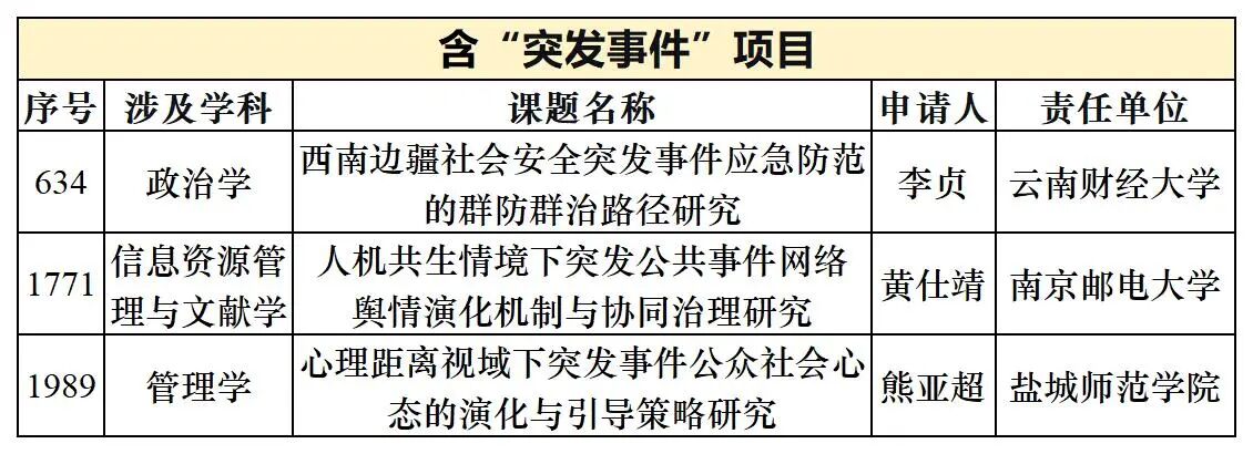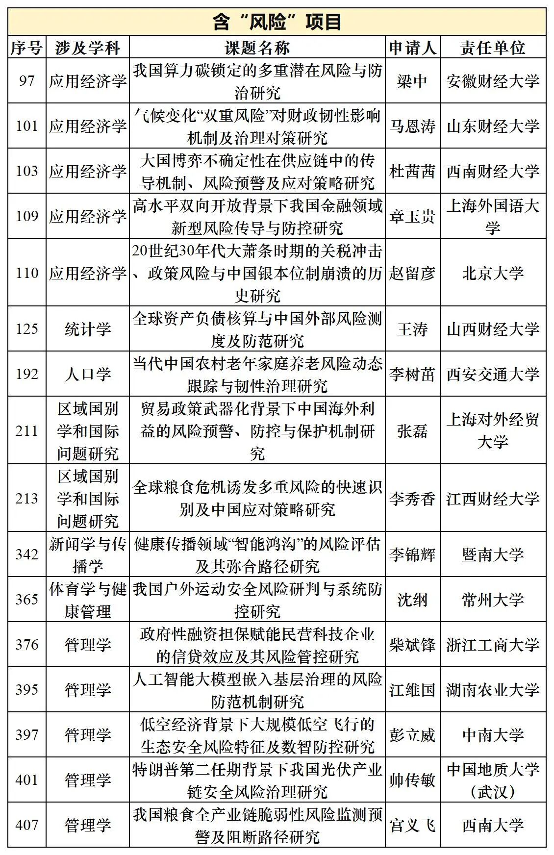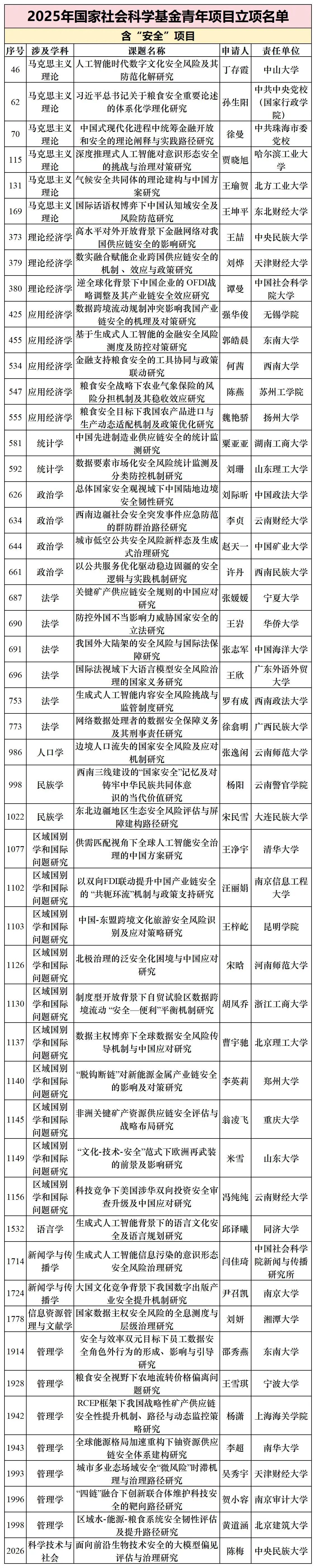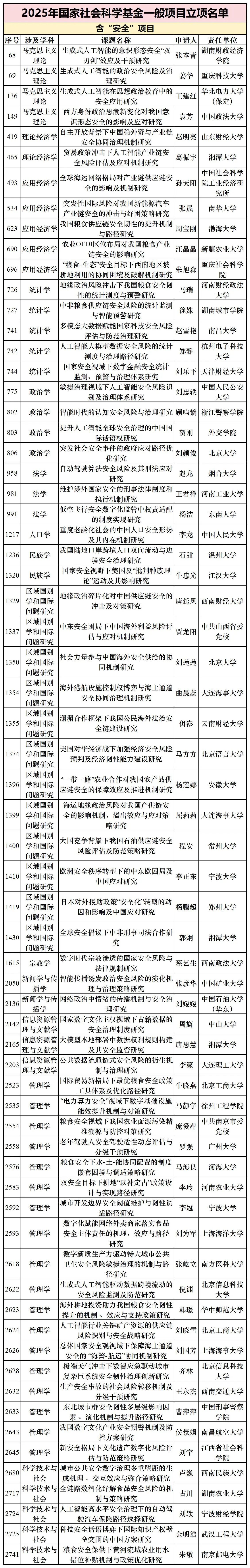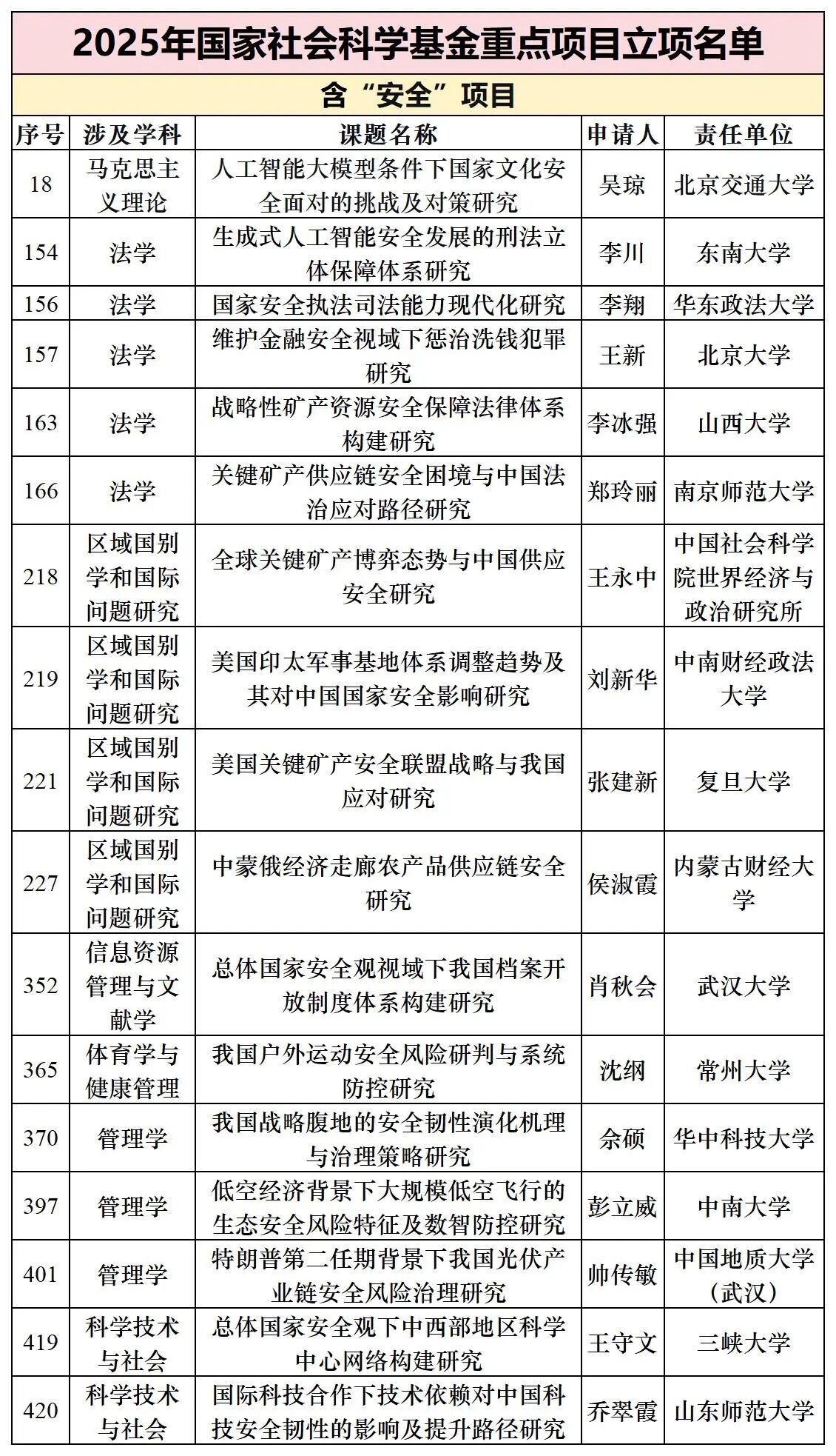搜集整理了课题中含【安全、风险、应急、突发事件、事故、灾害、危机、韧性】的2025年国家社会科学基金重点/一般/青年项目立项名单,与大家共享。另外,很多课题为“题目略”,估计也与安全相关。