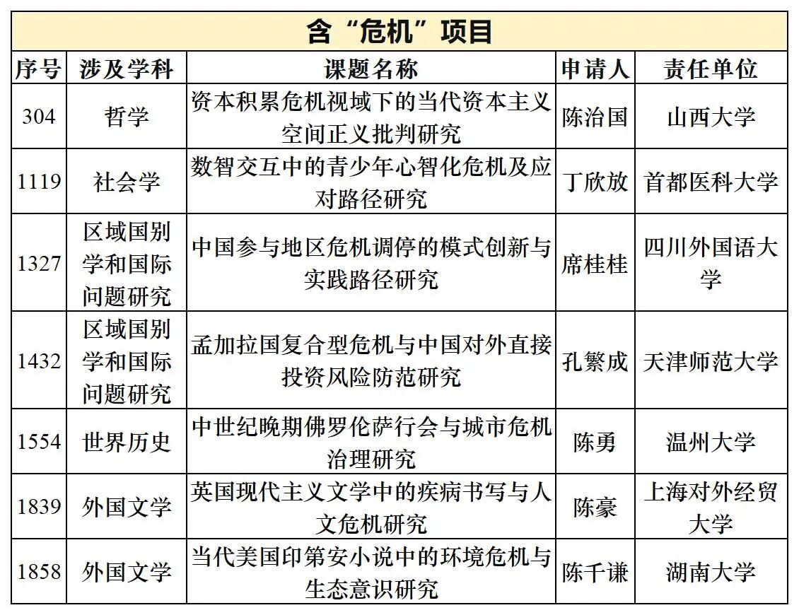 2025年国家社会科学基金项目立项结果近日公布,该文章系统整理了含安全、风险、应急、突发事件、灾害、危机、韧性的相关项目,不仅清晰展现了当前国家层面关注的研究方向与重点领域,更为学界把握科研动态、开展课题申报以及促进学术交流提供了重要参考。