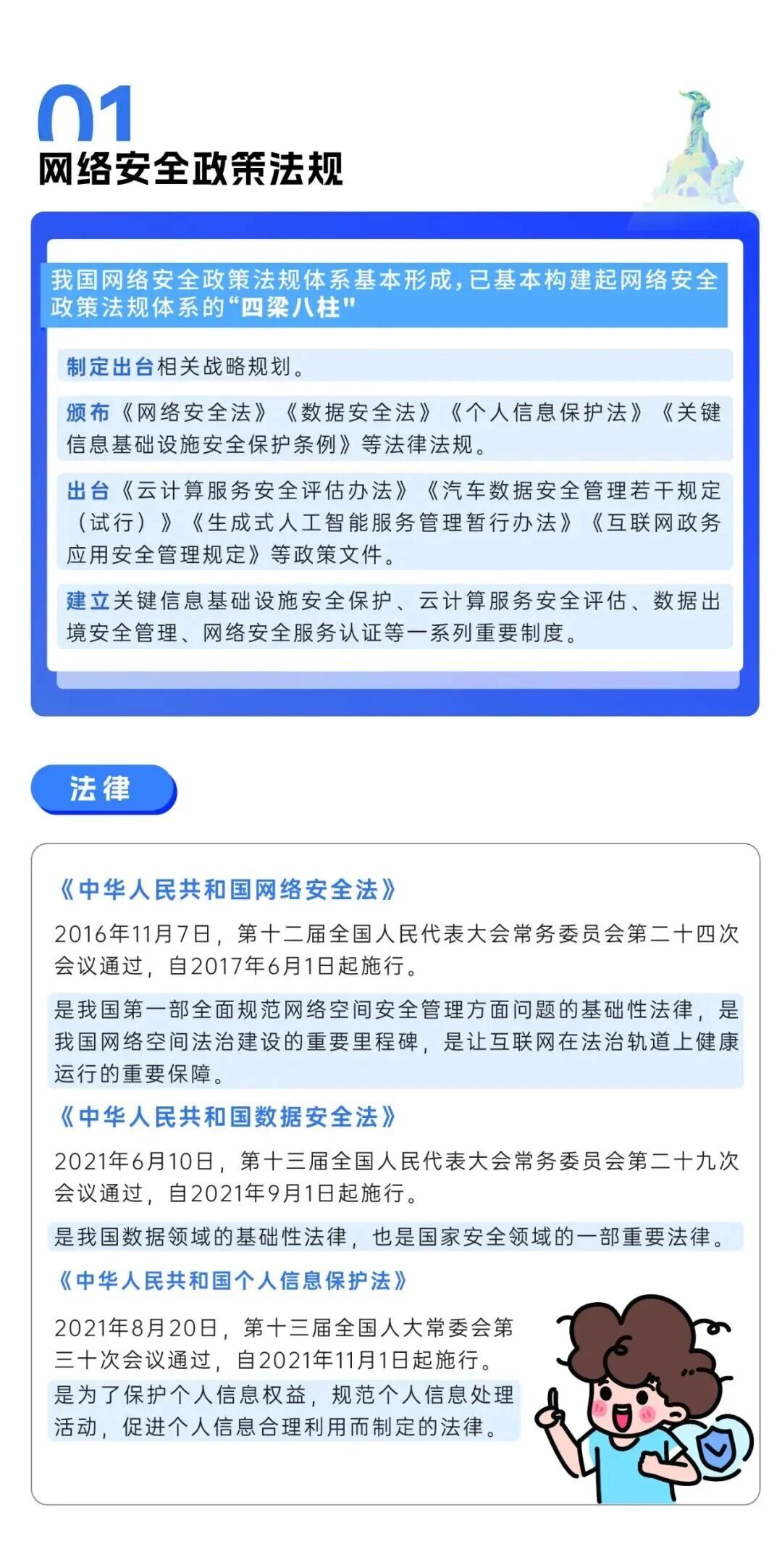 (二)深入宣传《网络安全法》《数据安全法》《个人信息保护法》《关键信息基础设施安全保护条例》《网络数据安全管理条例》《互联网政务应用安全管理规定》,以及人工智能安全、汽车数据安全等领域等重要法律法规、政策文件、国家标准,创新宣传方式,面向公众开展多层次普法教育活动。