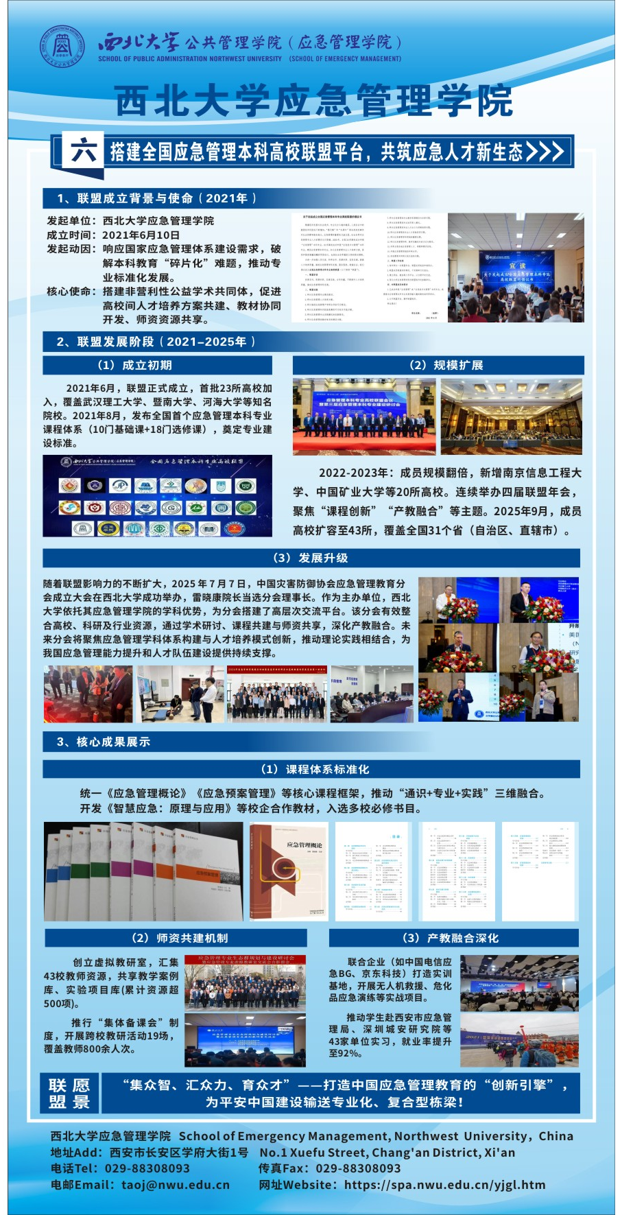本届应博会期间,我院设置的特色展位集中展示了在应急管理学科建设、科研创新与社会服务等方面取得的成果。我院精心制作了成果展板,从学院简况、学科建设、人才培养、产教融合、媒体运营五个方面全面介绍了应急管理学院的发展历程、现状和未来愿景,并制作了数百份宣传册和《应急管理文摘》,受到参会人员的高度关注。