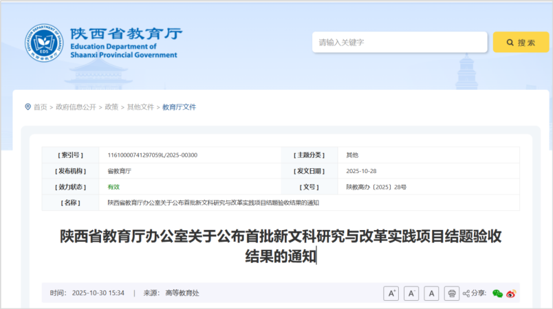在新文科建设与应急管理学科发展领域中,由雷晓康教授主持的《新文科建设背景下应急管理专业人才能力素质标准研究》项目与李尧远教授主持的《基于新文科建设要求的公共管理专业教师能力标准体系研究》项目双双通过验收,标志着我院在新文科交叉融合与应急管理专业建设领域取得重要阶段性成果,丰富了新文科建设在应急管理人才评价与公共管理师资标准领域的研究,为深入推进新文科建设、提升相关专业人才培养质量与师资建设水平提供了重要的理论支撑和实践参照。