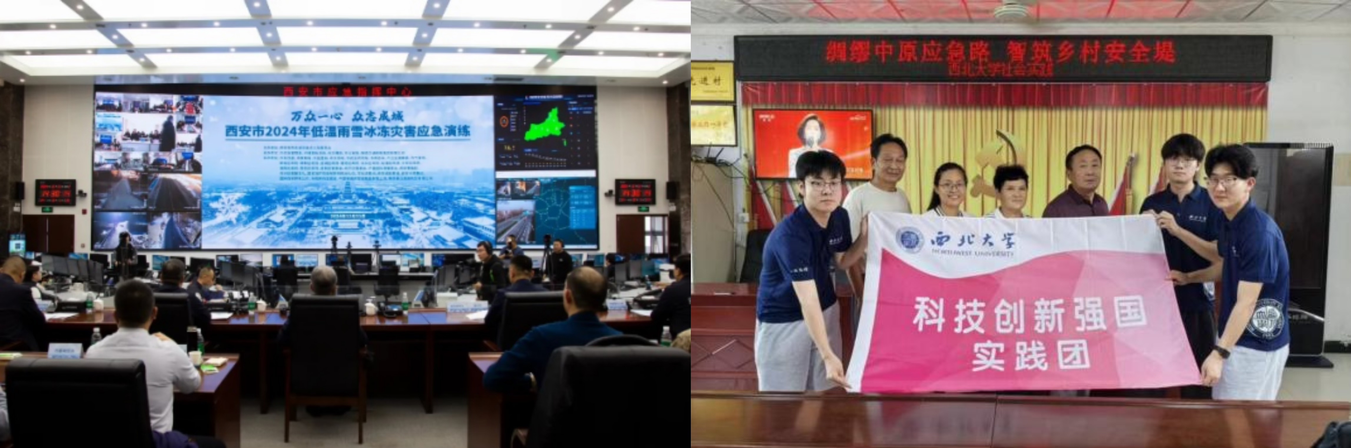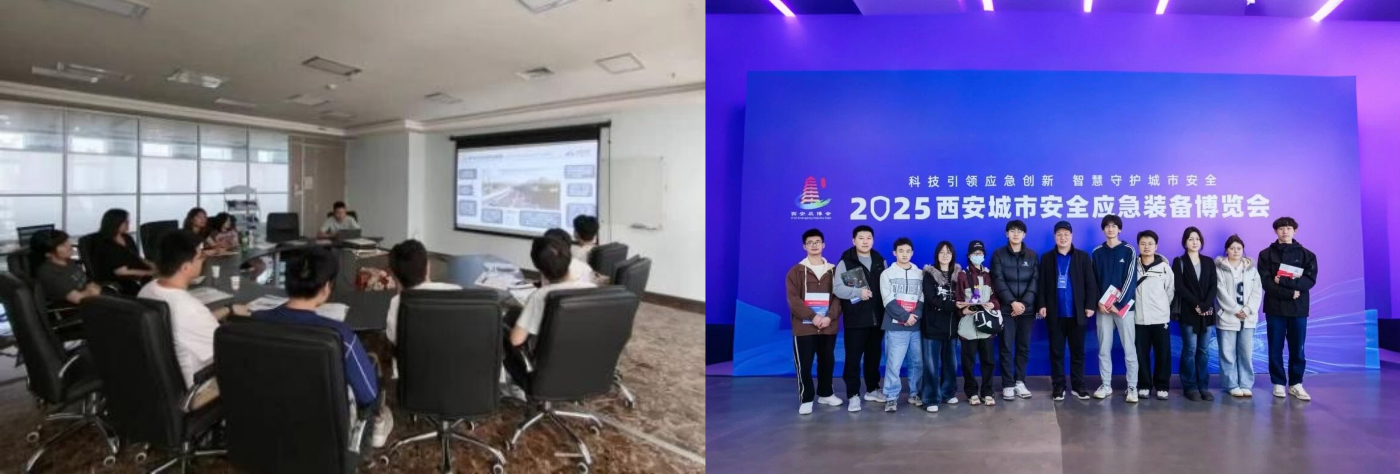 在企业实践与行业交流方面,学院组织学生走进西安中星测控有限公司,沉浸式体验智慧应急技术成果,通过与工程师互动交流,厘清智慧应急产品赋能实践的具体路径。此外学院也组织2024级本科生参与2025西安城市应急装备博览会,直观了解国内应急装备智能化发展前沿。同时,学院积极融入行业实践,院长雷晓康教授受邀全程观摩西安市2024年低温雨雪冰冻灾害应急演练并作现场点评,深化院校与地方应急管理领域的专业联动。在基层实践与社会服务领域,学院“绸缪中原应急路,智筑乡村安全堤”调研队在2025年暑期社会实践中表现突出,下沉基层服务群众,因学以致用的专业素养和强烈的社会责任感获当地政府表扬,同时还依托陕西省紧急救援协会,组织学生参观西安市综合减灾科普馆,拓宽基层应急管理认知视野。