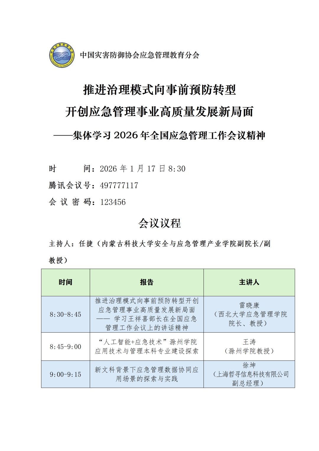 会议通知 | 推进治理模式向事前预防转型开创应急管理事业高质量发展新局面——集体学习2026年全国应急管理工作会议精神